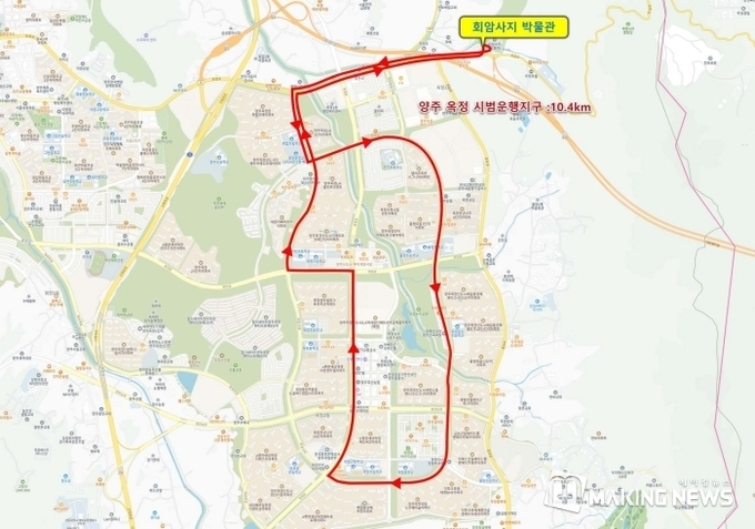 양주 시범운행지구의 계획 구간은 10.4km로 양주옥정신도시 내부와 유네스코 세계문화유산 우선등재목록에 선정된 회암사지를 연결하는 고정 버스 노선이다.